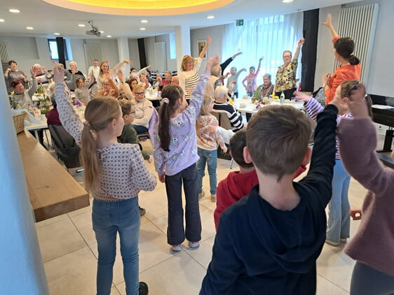Die Kinder aus den Klassen 1 bis 4 hatten ein abwechslungsreiches Programm vorbereitet. Sie sangen fröhliche (Frühlings-) Lieder vor und luden die Seniorinnen und Senioren immer wieder zum Mitsingen ein. Schnell entstand eine herzliche Atmosphäre, in der Alt und Jung gemeinsam musizierten.